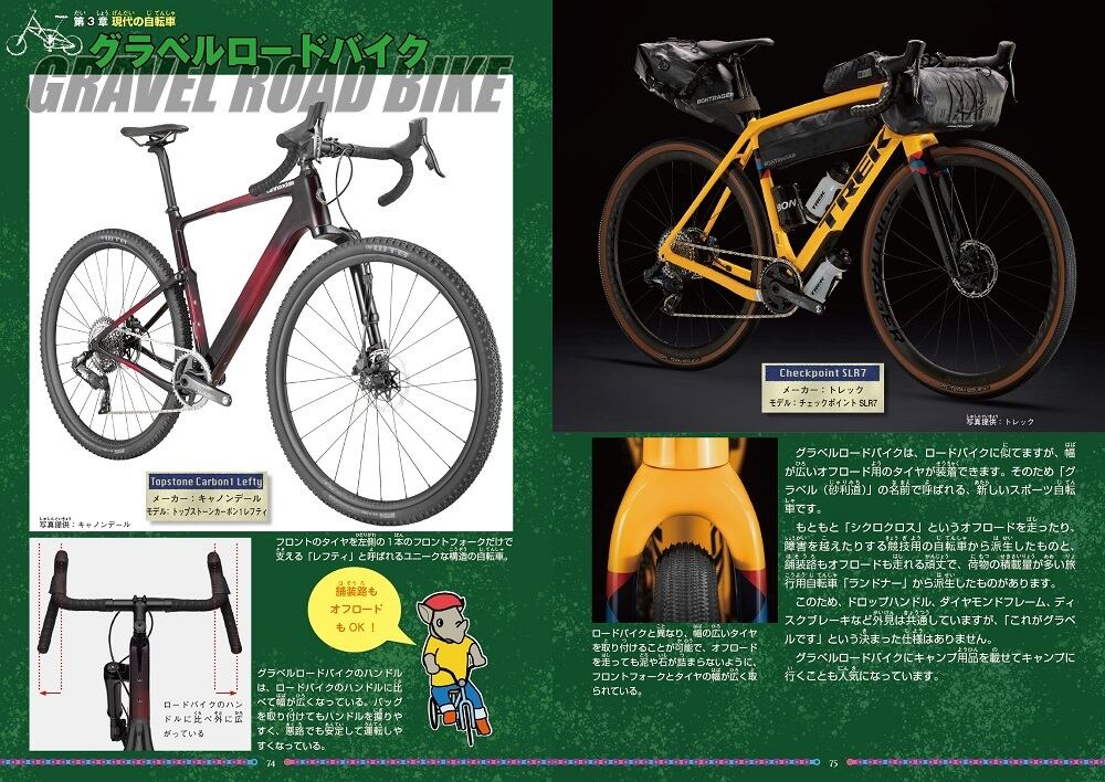 本書は、これら自転車の歴史と技術、さらには楽しみ方、メンテナンスに必要な工具の紹介から自転車競技、その他もろもろ盛り沢山の内容を解説した、大人から子供まで存分に楽しめる内容になっています。